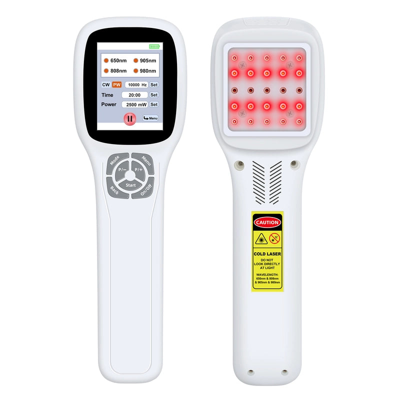 Power:2500mWWavelength: 650nm*10+808nm*5+905nm*5+980nm*5Number of Diodes: 25 DiodesWorking Mode: Continuous Mode & Pulsed ModePower Levels: 25% 50% 75% 100%, 4 LevelsTime Setting:...